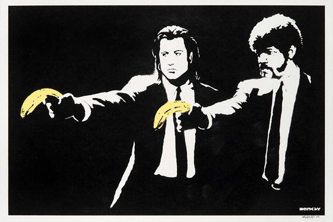 Some of my photos are original in idea, while others are inspired by things I’ve read, heard, or watched. Today’s photo is clearly heavily influenced by Banksy’s graffiti work Pulp Fiction, based on this iconic scene depicting Vincent and Jules from Quentin Tarantino’s 1994 film.