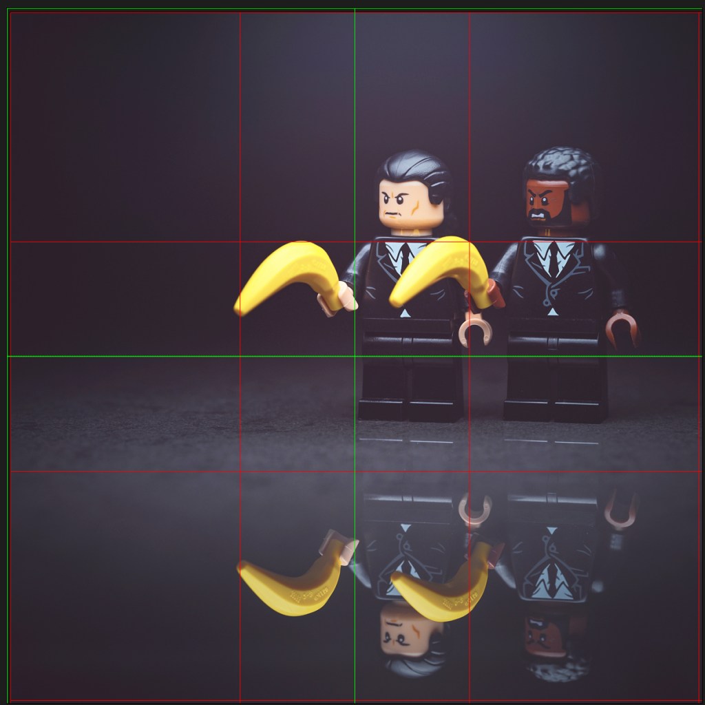 I’ve overlaid two grids here: rule of thirds in red, and quadrants in green. You can see how I’ve used both in consideration of subject placement, balance, tension, symmetry, and negative space.