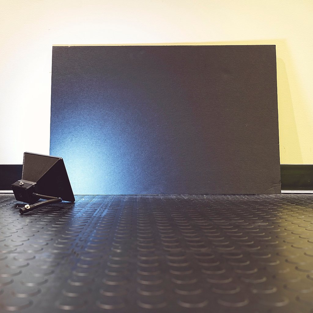 To help with creating a dramatic night scene, I aimed my last LitraPro with softbox at the bottom corner of my black foam core background.