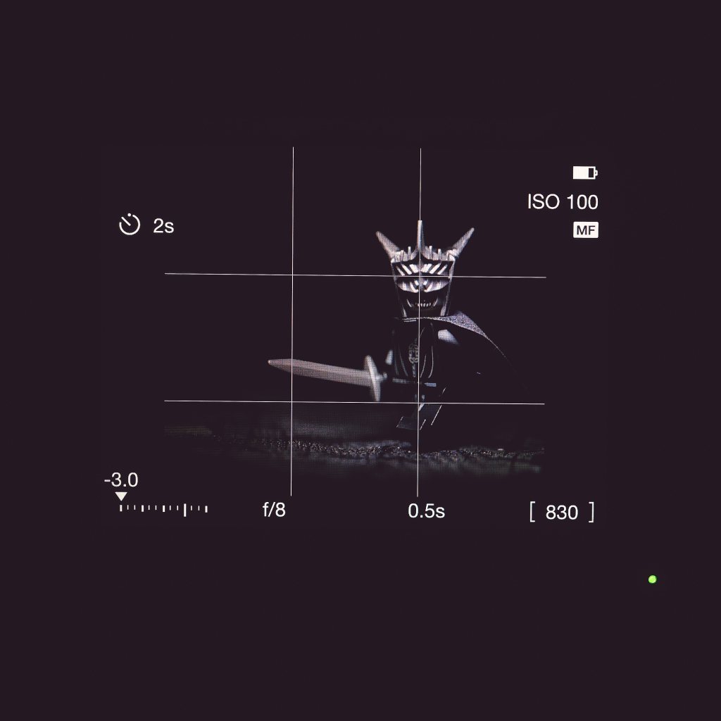 In order to add a little bit of life to the minifigure, I chose to show my subject in motion across the frame, wielding a sword while looking off in the distance. Given my low key photography approach, and with my light aimed to emphasize his helmet, subject isolation was simple – everything else was dark!