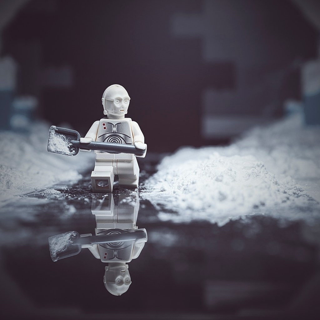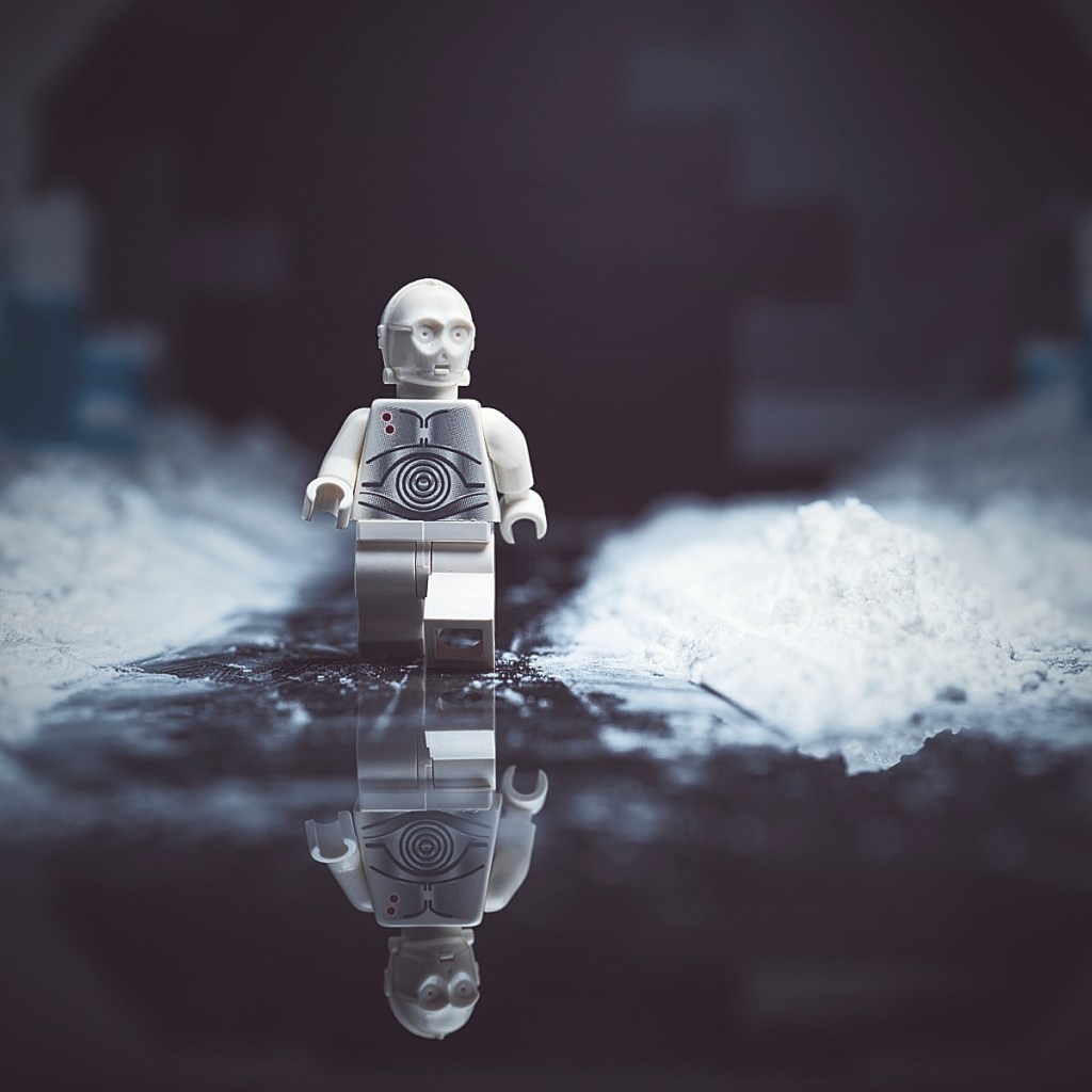 Bringing life to toys can be challenging and I find it helps to put them in ‘motion’ and engaging with their surroundings. I isolated K-3PO as a subject with light, colour, and depth of field, making sure that our eyes were drawn to him first and with no distracting background element to divert our attention.