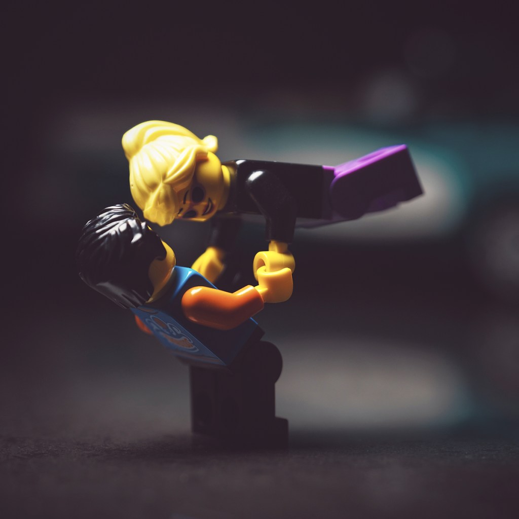 With the minifigure boy holding the bar in his left hand and the girl’s right hand upside down in the bar’s hollow, I was able to “lift” her.