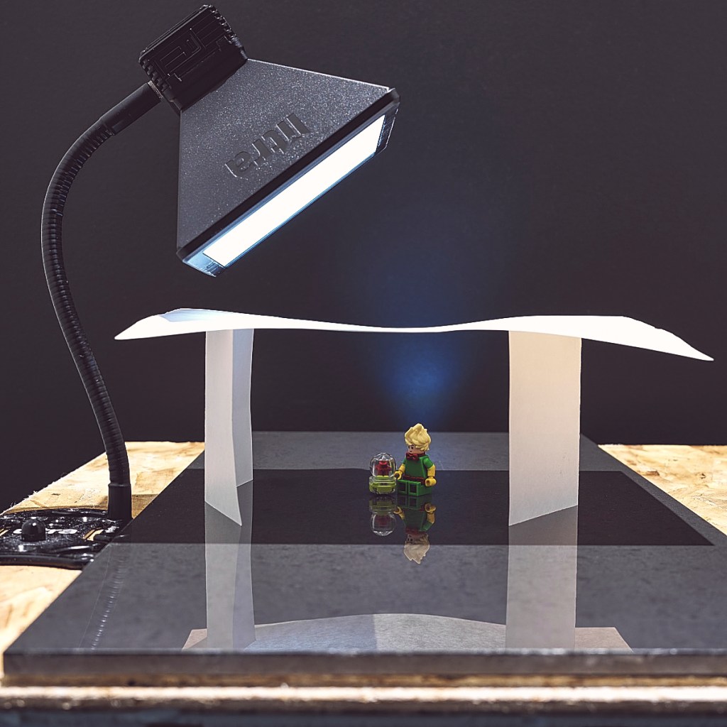 - Background light: Litrapro with grid, lying flat on a tabletop