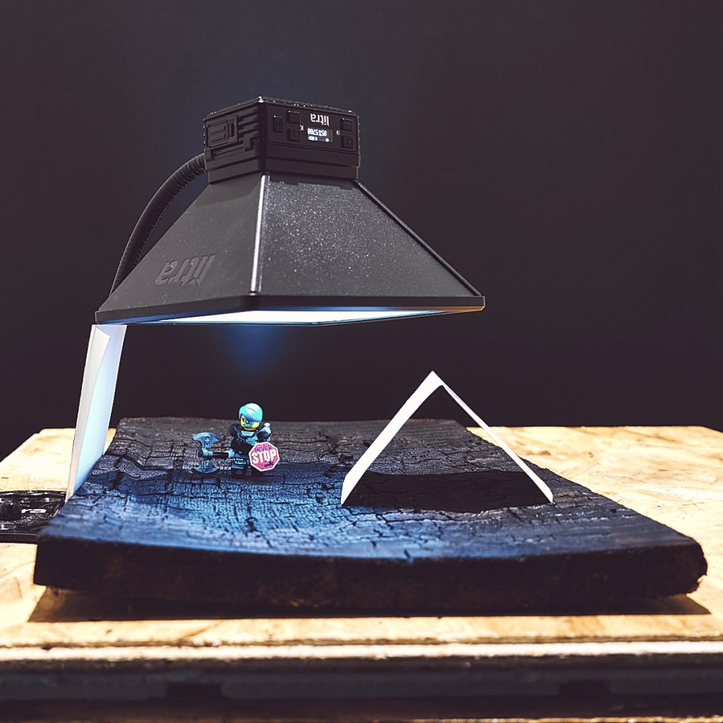 - Main light: Litrapro with softbox, positioned with a Platypod gooseneck arm and Ultra tripod base