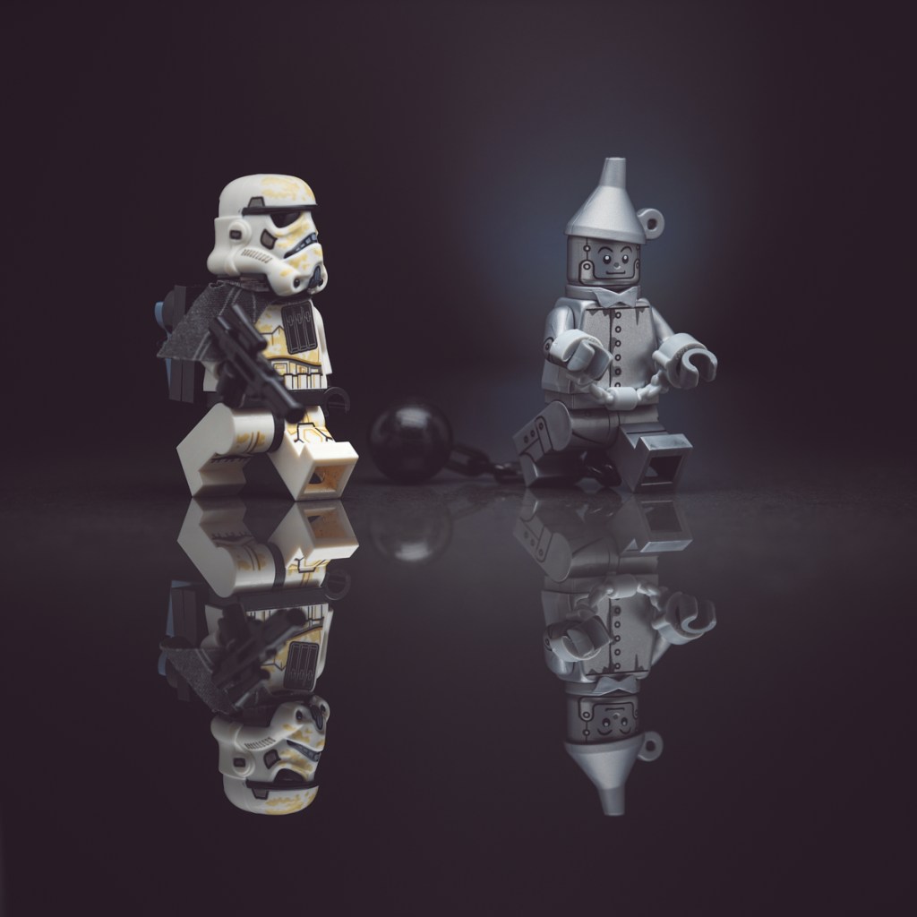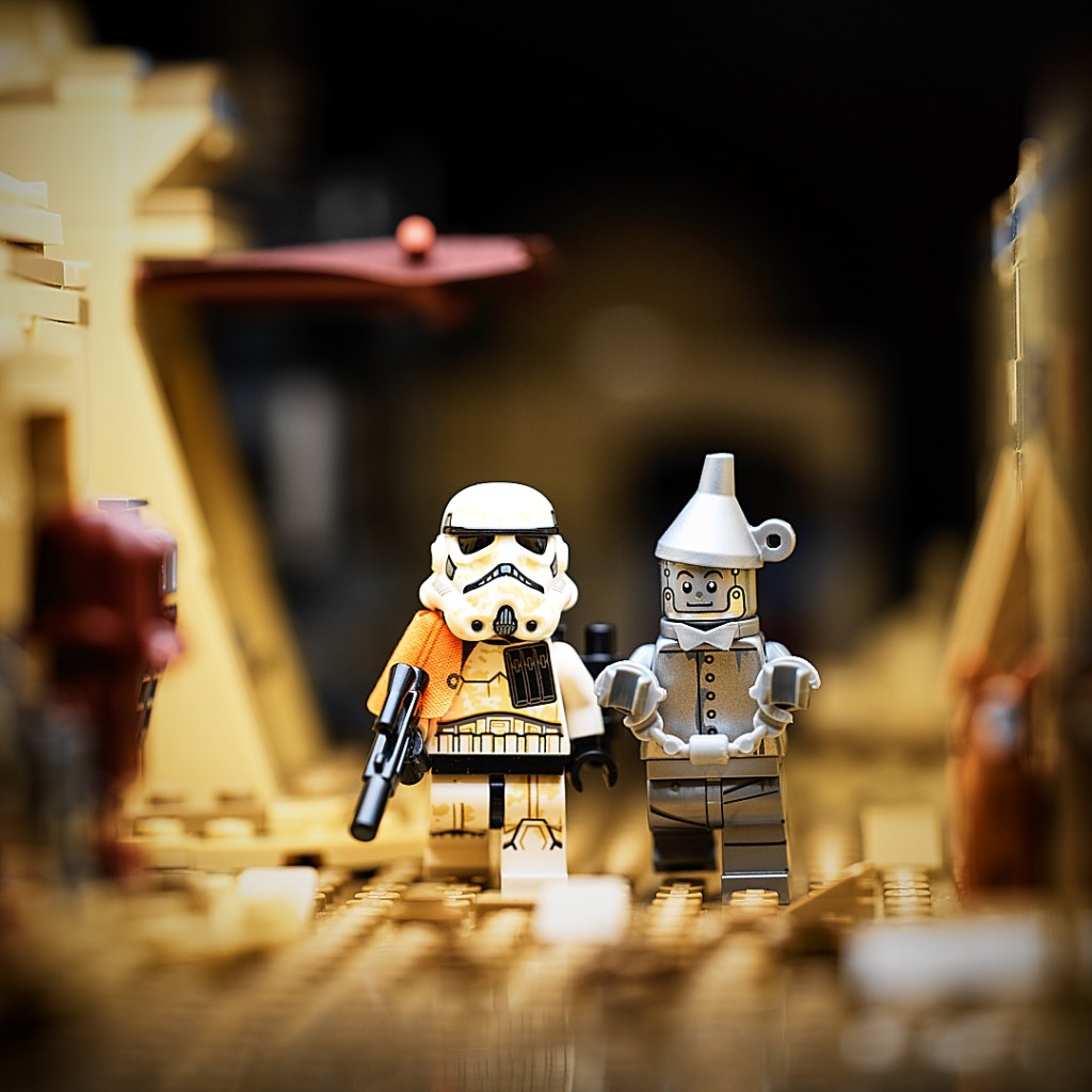 Today’s scene features the Tin Man from The Lego Movie 2 and an enlisted Sandtrooper from the LEGO Star Wars set 75290 Mos Eisley Cantina.