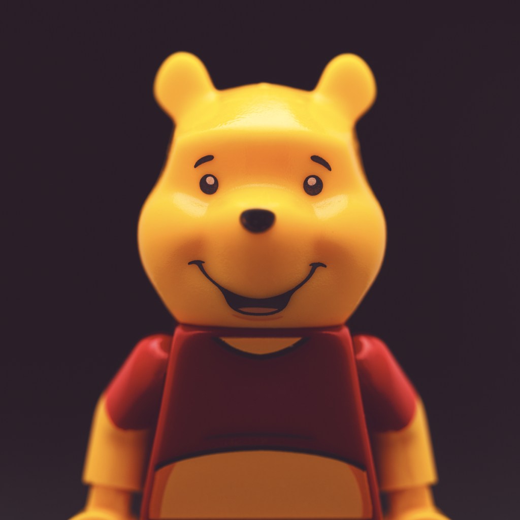 I separated Pooh from the background with colour, lighting, and (to an extent) selective depth of field. (unlike other shots in this series, I ended up stopping down to f/8 in order to get the text on the Hunny pot and pizza box in focus as well)