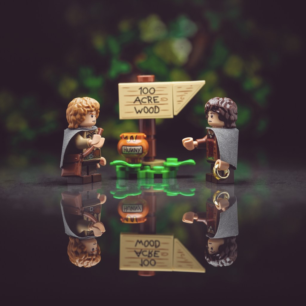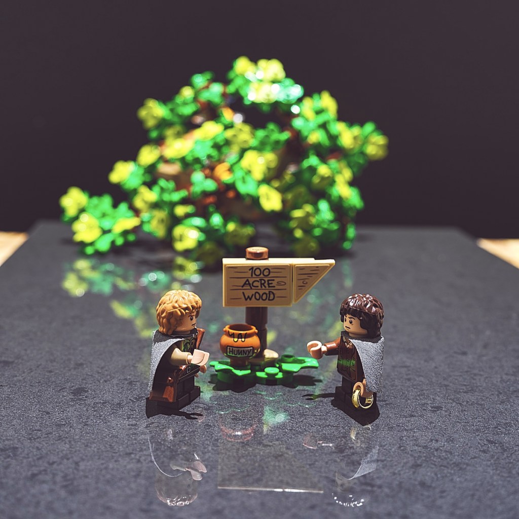 Today’s scene features a crossover of Frodo and Sam from The Lord of the Rings into the 100 Acre Wood from the LEGO Disney set 21326 Winnie the Pooh.