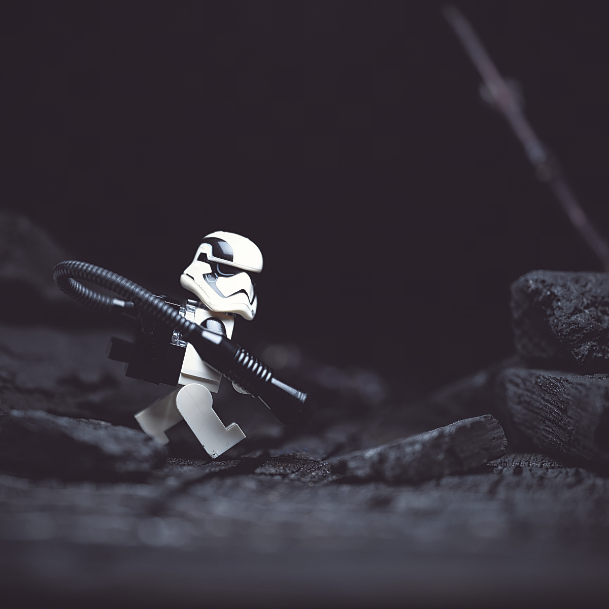 A nervous Classic Spaceman finds himself face to face with a dewback.